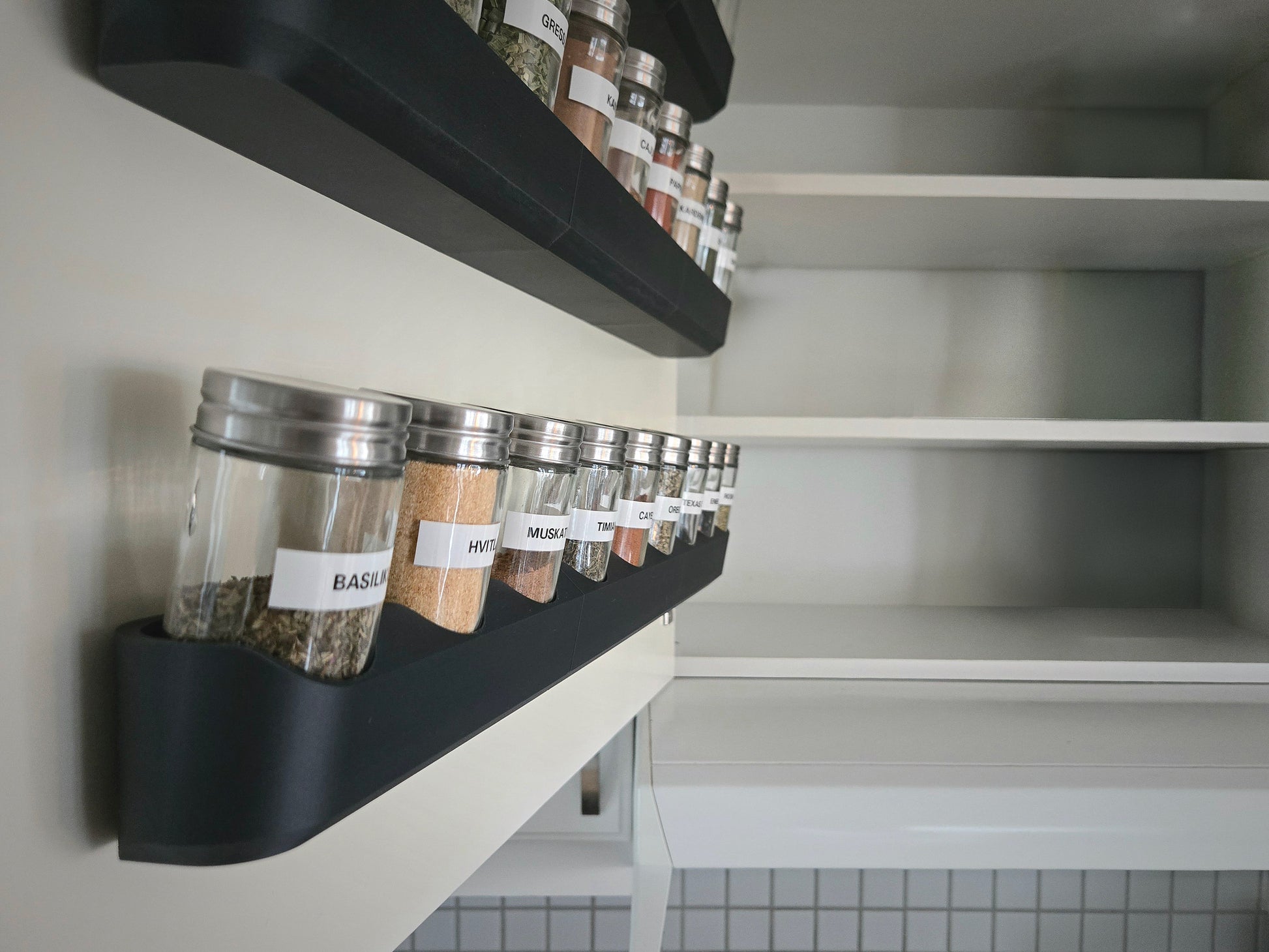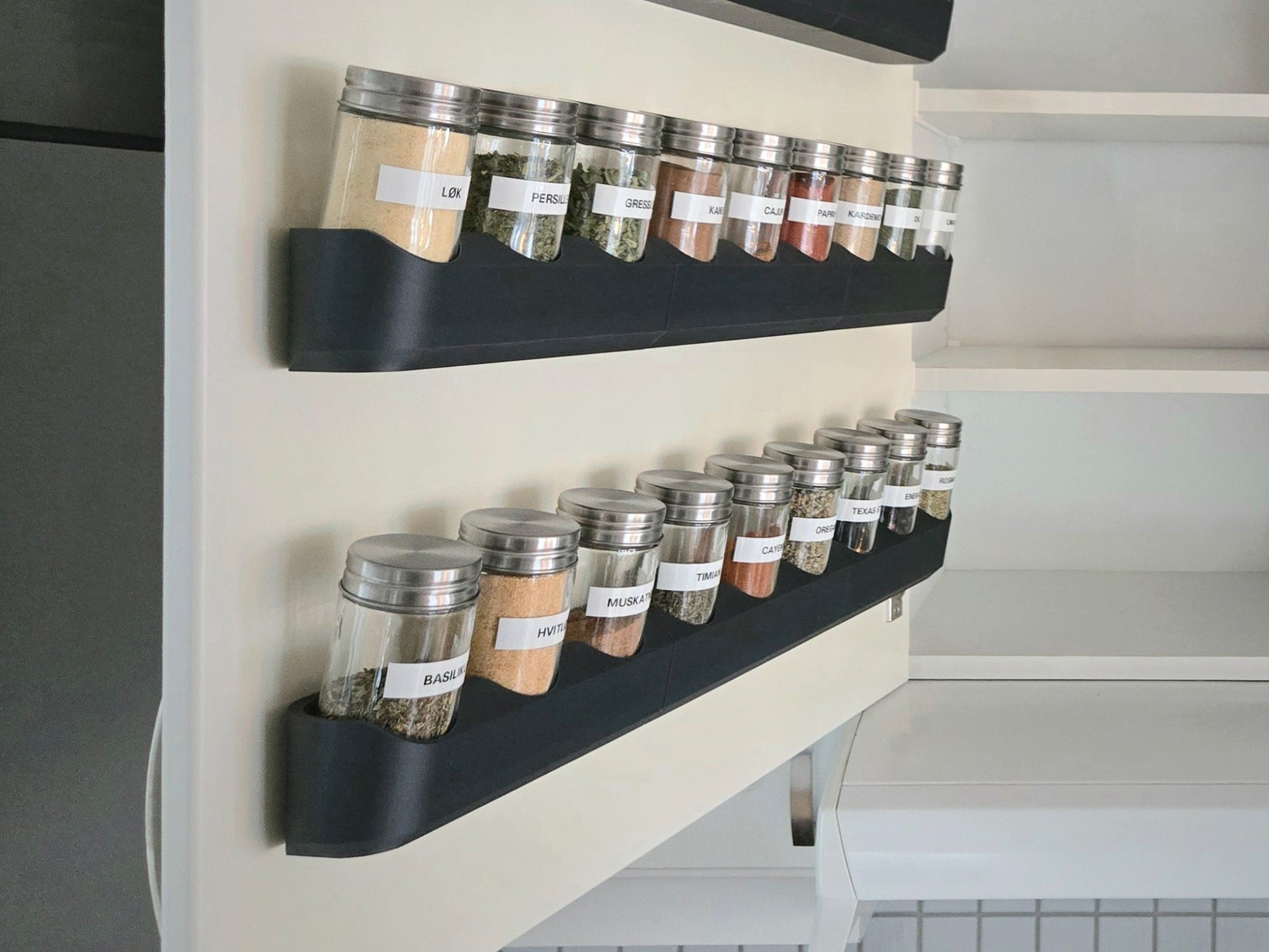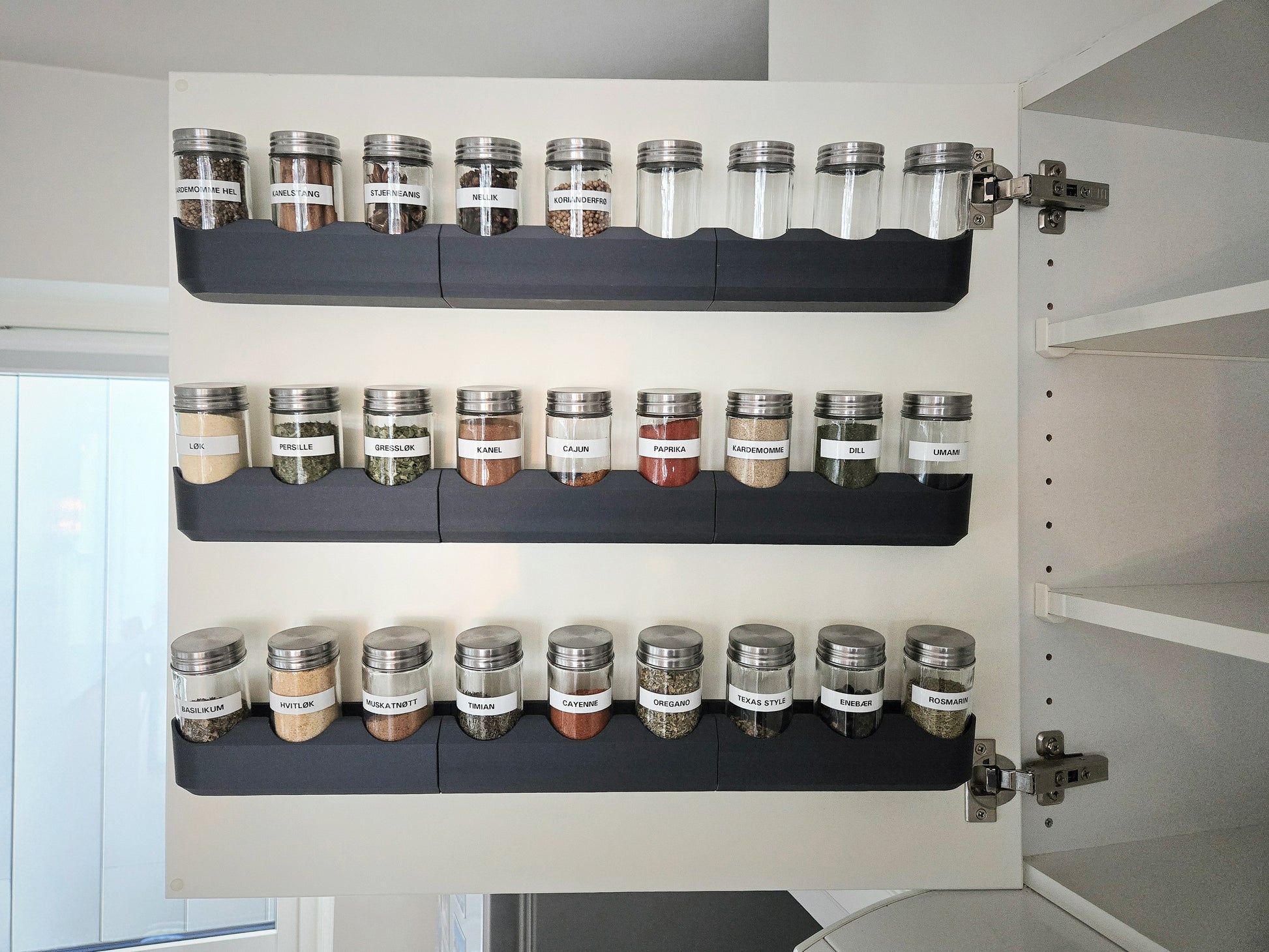 Designet for Clas Ohlson krydderglass. Modulær for å passe alle skap.