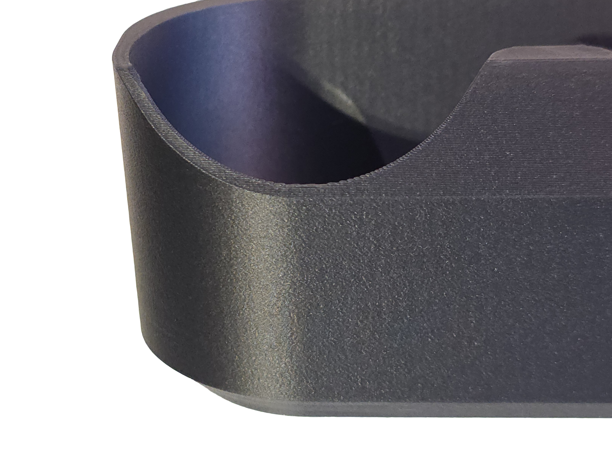 Hyllene er 3D-printet i PLA med karbonfibertilsetning. Dette resulterer i minimalt synlige laglinjer og en silkematt overflate.