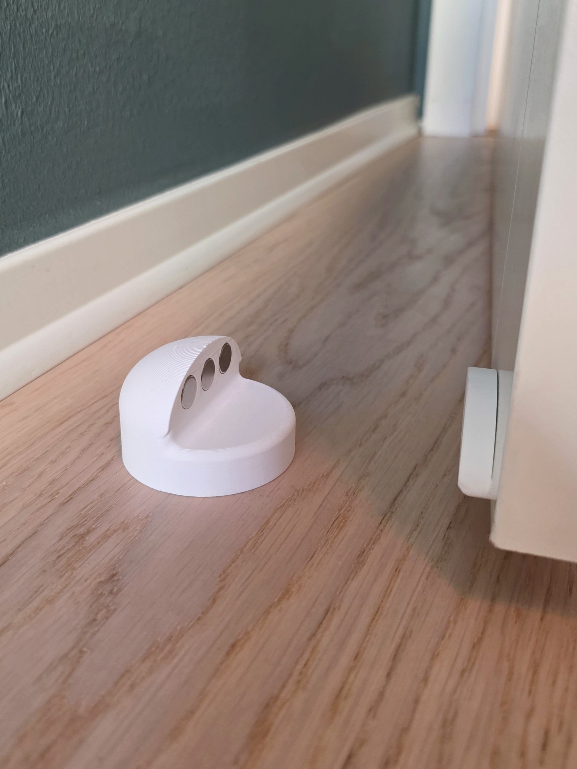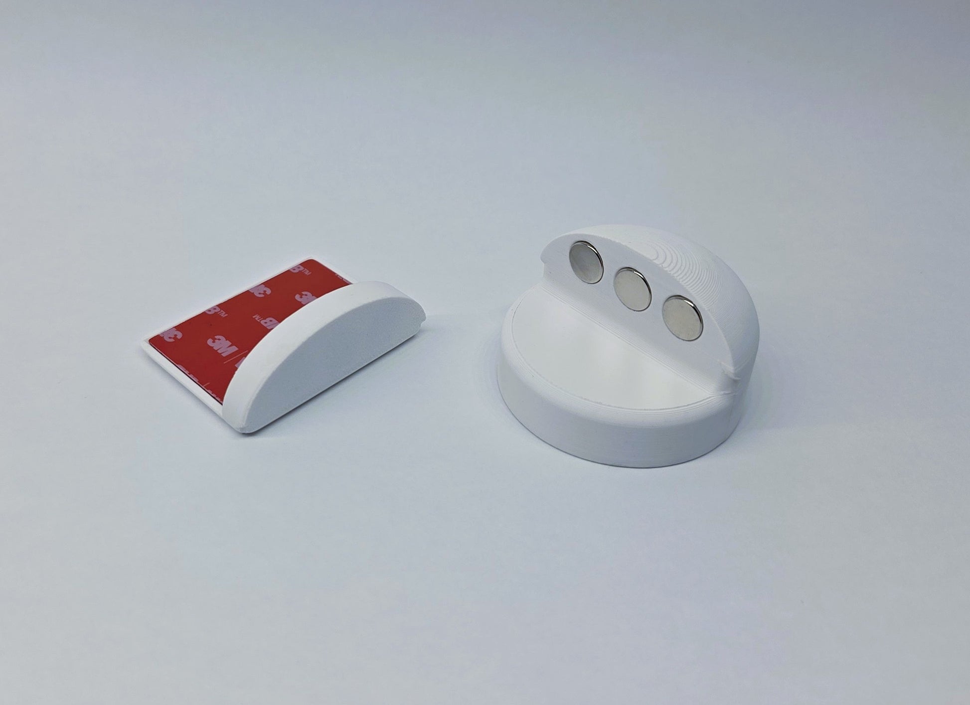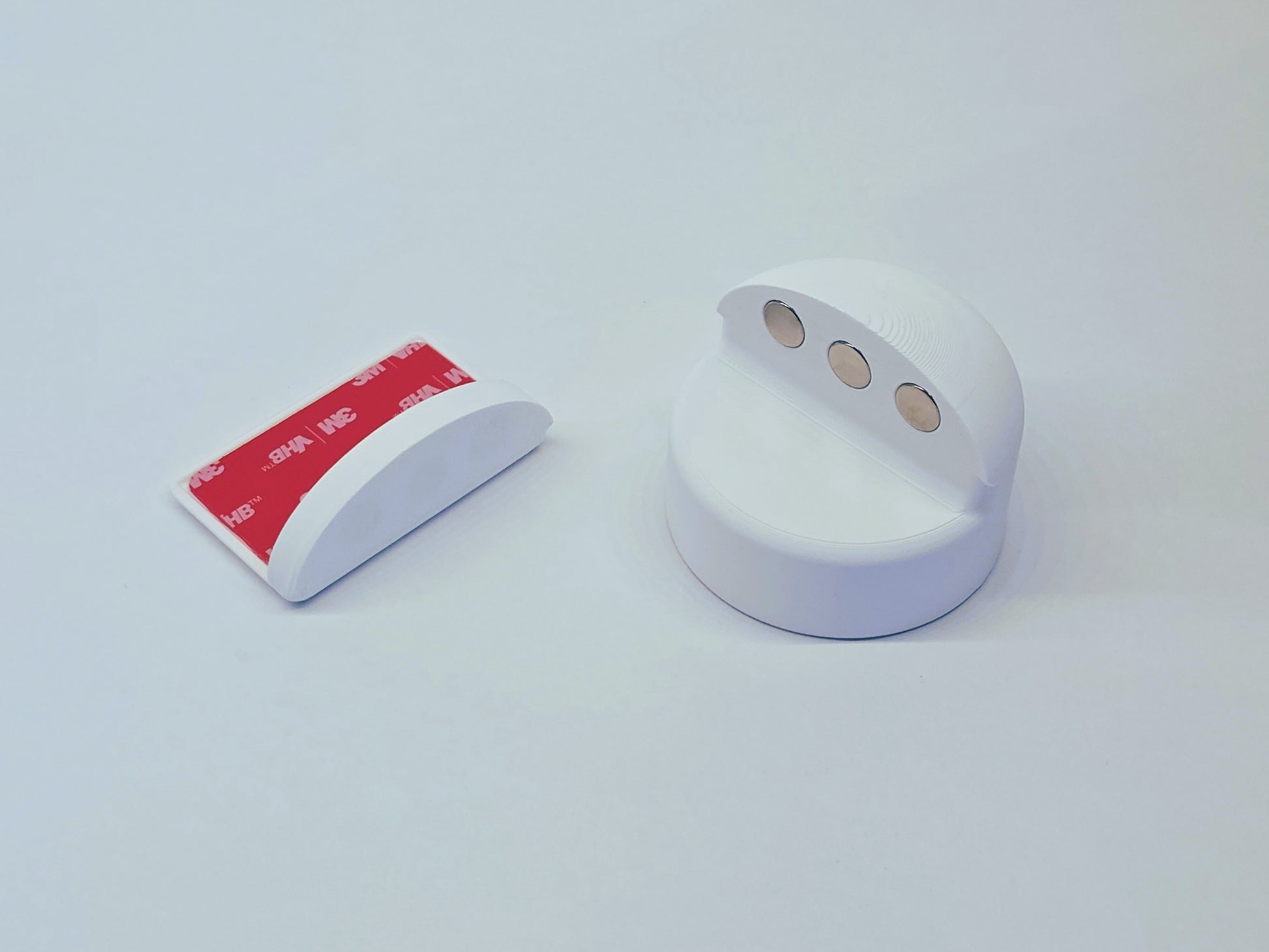 3D-printet i matt PLA. Festes med dobbeltsidig teip. Finnes i hvit og sort.